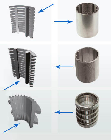 Сита обладают прочной конструкцией, большой точностью щелей осевого и радиального направления в цилиндрическом варианте, а также гладкой внешней или внутренней рабочей поверхностью, а калиброванная (профилированная) проволока из нержавеющей стали исключает коррозию.